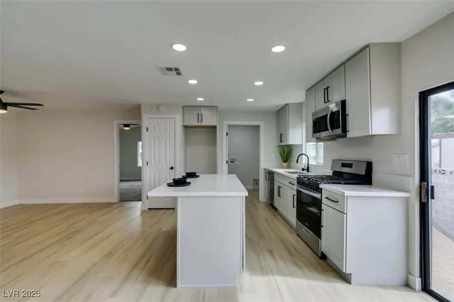 Enter this stunning renovation to an open concept floor plan pouring in natural light. NEW Dove Grey Shaker cabinets contrasted by matte black handles. Modern Quartz countertops, stainless steel appliances and recessed LED can lights. Both Bathrooms have been remodeled top to bottom. Warm luxury vinyl plank flooring that can withstand the family parties. Freshly painted inside including upgraded 5" baseboards. New light fixtures inside and out, kitchen & bath faucets, door handles, ceiling fans, chandeliers, toilets, light switches, everything you need to be able to simply move in and enjoy all this incredible home!