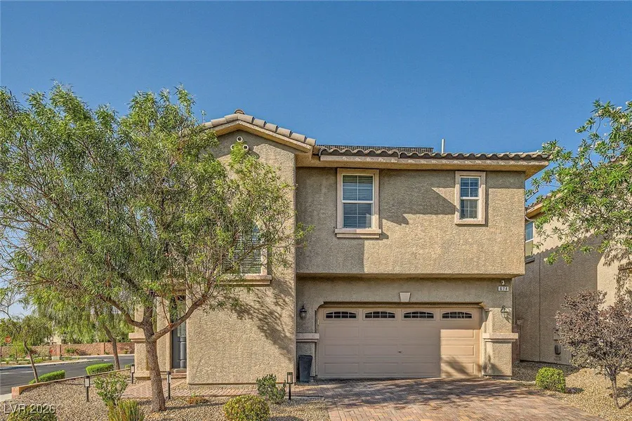 LOCATION, LOCATION, LOCATION! HIGHLY UPGRADED HOME ON AN OVERSIZED CORNER LOT WITH A SPARKLING POOL & OWNED SOLA! ERRANDS ARE A BREEZE WITH A GYM, STORE, RESTAURANTS, & MEDICAL SERVICES ALL WITHIN 0.5 MILES! CONVENIENTLY LOCATED NEAR THE DISTRICT, SILVER KNIGHTS ARENA, & GREEN VALLEY RANCH. OPEN FLOOR PLAN WITH MODERN DESIGN & NATURAL LIGHT THROUGHOUT. LOW-MAINTENANCE PLANK LAMINATE FLOORING THROUGHOUT ALL MAIN AREAS. GOURMET KITCHEN OFFERS AN ISLAND, GRANITE COUNTERTOPS, STAINLESS STEEL APPLIANCES, TILE BACKSPLASH, BREAKFAST BAR, & PANTRY. THE PRIMARY SUITE FEATURES 2 WALK-IN CLOSETS & A SPA-LIKE BATH WITH DUAL SINKS, SEPARATE SHOWER, & SOAKING TUB. SECONDARY BEDROOMS INCLUDE CEILING FANS & GENEROUS CLOSET SPACE. LOFT WITH PLUSH CARPET IS PERFECT FOR ENTERTAINING OR A HOME OFFICE. LAUNDRY ROOM INCLUDES CABINETS & A UTILITY SINK. PRIVATE BACKYARD OASIS FEATURES A COVERED PATIO, TURF, PLA...