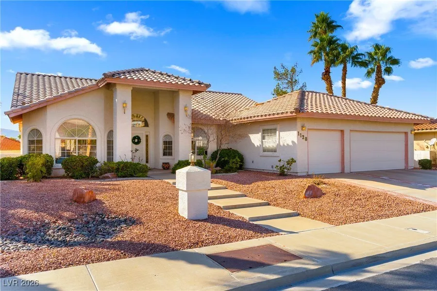 The three-car garage provides ample storage, and the oversized lot is a true blank slate, large enough for a pool, outdoor entertaining, or your dream backyard design. Enjoy a private yard with a covered patio, RV gate, and breathtaking mountain and Las Vegas Strip views. With single story living, a generous lot, and a highly desirable location, this Calico Ridge home offers endless potential.