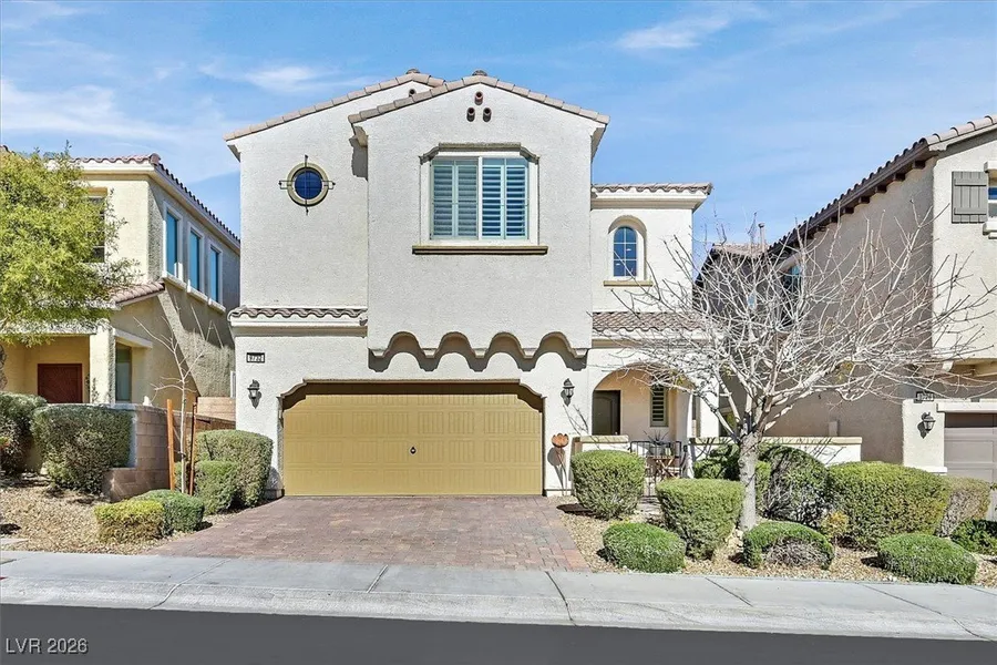 Welcome to this elegant 3-bedroom, 2.5-bath residence located within a gated enclave of Skye Canyon. This thoughtfully designed home offers a light-filled, open-concept layout enhanced by custom shutters throughout and refined finishes. The chef-inspired kitchen features granite countertops, stainless steel appliances, a large center island, and an oversized pantry, ideal for entertaining and everyday living. Retreat to the spacious primary suite, complemented by generous closet space, while secondary bedrooms also offer large closets and flexibility. Outdoor living is elevated with professionally landscaped front and rear yards and a private courtyard patio, perfect for relaxation or intimate gatherings. Convenient attached garage. No Sid! Enjoy resort-style living with access to a state-of-the-art fitness center, swimming pool, clubhouse, coffee shop, pickle-ball, basketball and tenni...