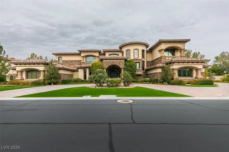 This prestigious and private enclave of guard-gated Southern Highlands hosts 11 QUINTESSA. Over 10,000 sq. ft. of unmatched privacy, scale, and sophistication. Crafted on a rare double lot, the home has hosted celebrity events, private gatherings, and philanthropic celebrations. Inside are 5 bedroom suites, 8 elegant baths, grand living spaces, dedicated gym area, and offices, all framed by expansive windows that open up to resort-style amenities. Escape to the backyard with a sparkling pool and spa, generous lawn areas, outdoor kitchen, fire pit-seamless indoor-outdoor living. The balcony captures mountain views, while the lush park directly across the street—complete with green lawns, a pond, and charming ducks—enhances this setting. Owners will love oversized garages designed for multiple vehicles and possible trailers, along with private half-court basketball court. A true sanct...