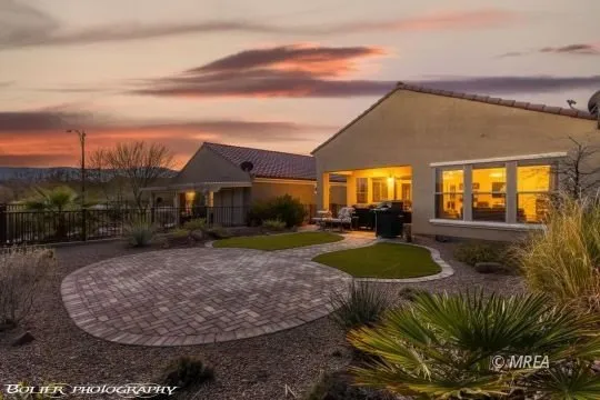 Looking to downsize and still be part of the Sun City community? This home could be just the ticket. 2 bedrooms, 2 baths and a 2-car garage. The home is being offered turnkey at this price. Located at the southeast corner of the development. It is quiet and there is very little traffic. Enjoy the mountain views from your eastern facing back patio. Granite countertops and custom features like the paver driveway and landscaped backyard will add to your enjoyment of this adorable home. Have a little doggie? There is a Sun City pocket park just across the street. The home is filled with plenty of natural light. There is a mini split in the garage for heating and cooling and a water softener.