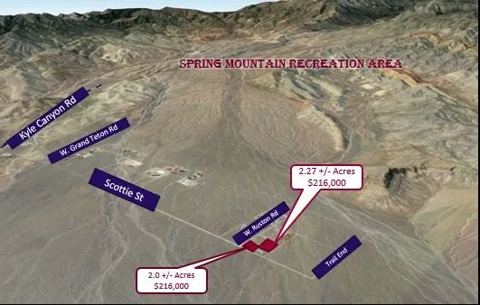Parcels located near the Spring Mountain Range and Recreation Area. Mount Charleston, at 11,916 feet, is the highest mountain in the range and Clark County.