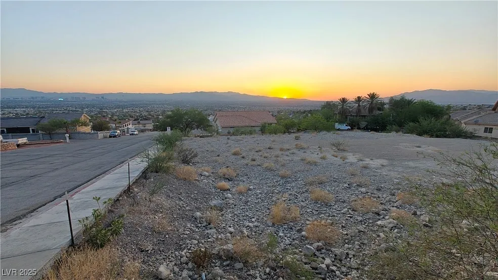 Outstanding view! Lot in gated community with NO HOA! Approx. .61 acres zones for single family residential. Full city, strip, and valley views to the east and unobstructed mountain views to the west. This property is in a small 10 home gated community right at the base of Frenchman Mountain AND COMES WITH WATER RIGHTS! All streets in the gated community are private. Owner will also transfer custom home plans, structural drawings and plot maps already prepared for this specific property.