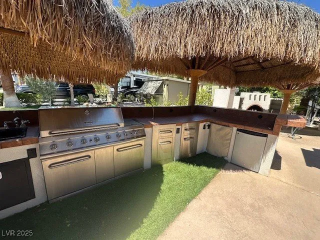 Lot 52, located in the desirable "Old Town" section of the prestigious guard-gated Las Vegas Motorcoach Resort, offers a rare combination of privacy, shade, and upscale outdoor living. Surrounded by mature landscaping, this beautifully appointed lot features a fully equipped outdoor kitchen, spacious dining area, multiple palapas for relaxing in the shade, a cozy fireplace, and convenient storage, making it an ideal retreat for both quiet relaxation and entertaining. Set within one of the most charming and established areas of the resort, Lot 52 provides a tranquil, resort-style setting with all the amenities and comforts to elevate your motorcoach lifestyle.