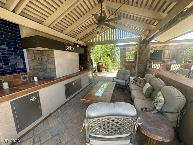 Located within the Class A Las Vegas Motorcoach Resort, this site magnificent corner site has all the luxuries you can imagine and is surrounded by large palms for added privacy. Featuring two large pergola roof structures with stone and tile buildouts that include a living area with privacy shades, a full set of furniture, TV, fire table, and water feature. The kitchen includes a BBQ, oven, dishwasher, and microwave just to name a few amenities. There’s also two large roll up sheds with a washer & dryer and water softener. Don’t pass up an opportunity to own this beautiful site!