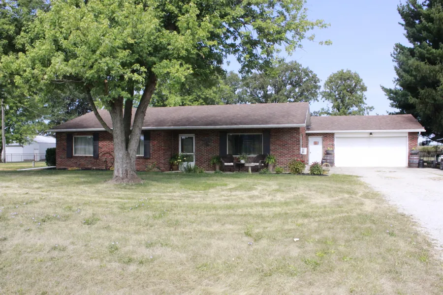 Great all brick ranch, 3 bedrooms, 1 bath, fully fenced back yard with attached 2 car garage situated on just under a 2-acre lot. Large family room, formal dining room and a huge utility/bathroom. Gorgeous farm field views off the rear patio and great covered front porch. Large Barn with electric and concrete floor. Don't miss out on this amazing home!!