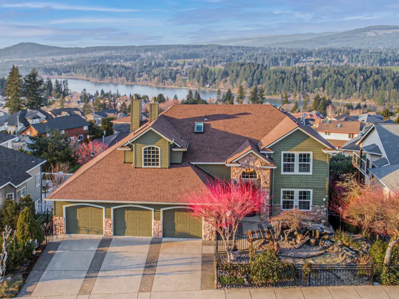The pinnacle of prestigious Lacamas View! Some of the most spectacular panoramic lake and mountain views from this custom Camas home! UPDATED generously inside/out with quality materials! New flooring, paint, moldings, fixtures, siding, roof, and expansive 3 level Trex deck. Fantastic floor-plan is truly an entertainers paradise! Gourmet chefs kitchen with granite island, breakfast bar, and all new top of the line SS appliances. Grand entrance, large great room overlooking the lake, 2 story dining room, plus main level bedroom and bathroom! Enormous owners suite upstairs with vaulted ceilings, see-through fireplace to spa bath, and private deck to take in the views. Loft/library with built-ins and vaulted ceilings. Fully remodeled lower level offers a custom bar, family room, bedroom, bathroom, and wine cellar. Potential to make lower level a separate living space with its own entrance. ...