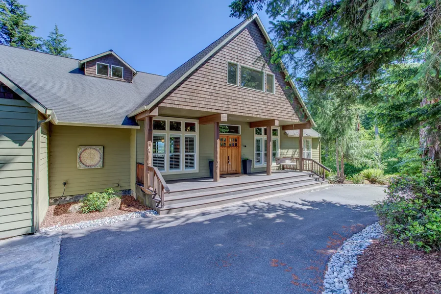 Beautiful updated chalet w/complete privacy in gated community! Travertine flrs thrghout main lvl,formal dining room,opens to 2 story great room w/large windows & stone fireplace. Open concept kitchen w/large granite island,eating bar,SS appliances & custom cabinetry.Master suite w/balcony, walk in shower,custom vanity area.Barn doors in daylight basement, bar area, HUGE double decks w/amazing views of Mt Hood and Mt Jefferson! Loads of walking and horse trails!