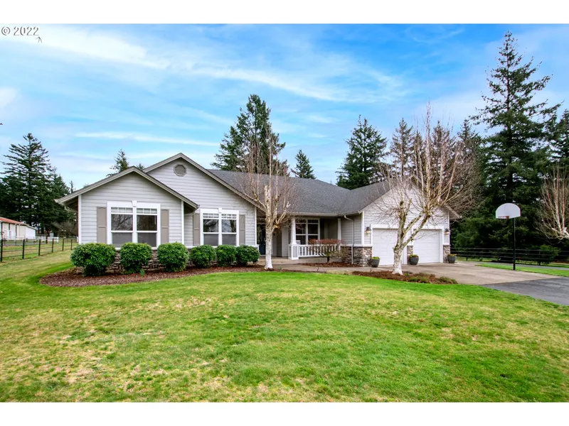 Delightful Ranch Style Home Nestled on 5 - Pastoral Acres in Prime Mt. Norway Location! Gated, paved, fenced, flat, useable property, sprinkled with fruit & fir trees, plenty of room for all of the animals & toys. Light & bright open concept living. Boasts high ceilings, hardwood floors, cozy fireplace, & spacious primary suite. Fantastic shop/barn has concrete floor, power, hot H20, full bath, washer/dryer, stalls, & storage. RV parking, hook-up, & dump. Just 5 mins to Hwy 14 & 15 mins to PDX!