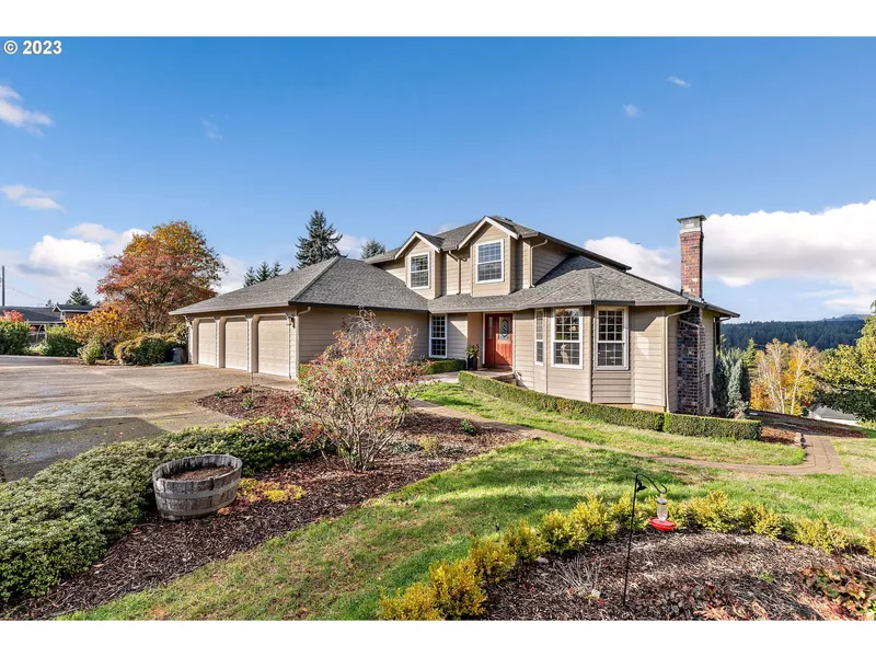 Little slice of heaven and serenity with incredible territorial views on the outskirts of Vancouver in Beautiful Brush Prairie. 1.27 acres of well-maintained landscaping, expansive lawn & privacy. Take in the views and relax in the built-in spa on the large, inviting Timber Tech PVC low-maintenance deck. The entire home has been remodeled/updated. Genuine Brazilian Cherry hardwood floors throughout, Hunter Douglas blinds (some powered), solid core doors to name a few divine touches. Craftsman-style trim, crown molding, and wainscoting finishes throughout. Obvious quality and care around every corner. Gas fireplace, and vaulted ceilings in the living room. Kitchen has walk-in pantry, GE Profile double oven gas range, quartz countertops, Bosch dishwasher, and custom soft close cabinets. Primary suite on the main floor includes cherry cabinets, oversized shower with 2 shower heads and trave...