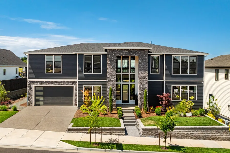 The designer-decorated Samish model home elegantly blends luxury and charm within its desirable open-concept floor plan, the foyer unveiling a stunning 2-story great room with a dramatic catwalk above on the second floor. Floor-to-ceiling windows draw light into the great room, connecting seamlessly with the well-appointed chef's kitchen and casual dining area. This culinary masterpiece features JennAir NOIR appliances, a dramatic Taj Mahal quartzite double waterfall-edge island with a breakfast bar, double-stacked cabinets, and a full-height quartzite backsplash. A walk-in pantry and a versatile workspace enhance its functionality. Expansive outdoor living spaces include a covered patio with stamped and stained concrete, an outdoor fireplace, and an Equinox louvered pergola that covers a built-in kitchen, making it ideal for entertaining. The main level also includes a first-floor bedroom suite with a walk-in closet and private bath, a large flex room with an elevated built-in wet bar, a powder room, and an elegant everyday entry for additional convenience. Upstairs, the private primary suite offers a luxurious retreat with a generous walk-in closet and spa-like bath featuring separate vanities, a freestanding soaking tub, a frameless quartzite shower with dual rainheads, and a private water closet. Secondary bedrooms, one with a walk-in closet, include private bathrooms and are connected to a custom-designed loft. Throughout the home, premium Kentwood Bohemia brushed oak hardwood flooring, a 60 linear Primo fireplace with shiplap detailing, and custom accent walls create a sophisticated aesthetic. Smart home technology, a thoughtfully designed laundry room, and a finished wet bar enhance functionality, while an automated irrigation system ensures a lush landscape. Blending elevated finishes with intelligent design, the Samish offers a perfect balance of elegance and practicality. Discover what luxury living truly means and schedule a tour of this beautiful home.