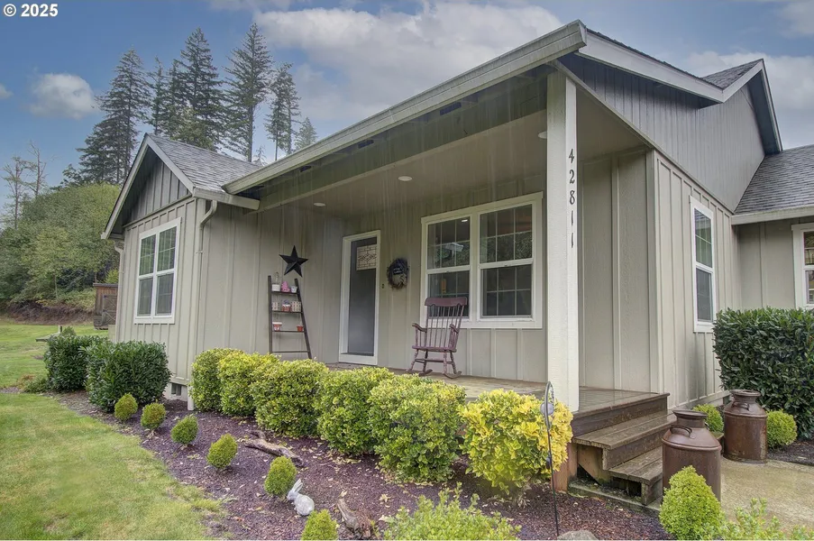 Beautiful & Charming 1 level, 3 bedroom/2 full bath home on 1.39 acres. 12x36 covered RV parking with concrete pad. Large tool shed, terraced backyard with fire pt, lots of room for parking. The family room is spacious with a celing fan. The kitchen has an island, a walk-in pantry, a large eating area, tile backspash, and stainless steel appliances. The attached oversized 2 car garage has a finished workshop attached. Good size bedrooms with large closets. The primary bedroom suite has a walk-in closet, a walk-in shower, double sinks and a linen closet. Tidey, clean and bright. Complete with a ductless heating/AC unit to boot. The property has a nice producing well and is on a septic system.