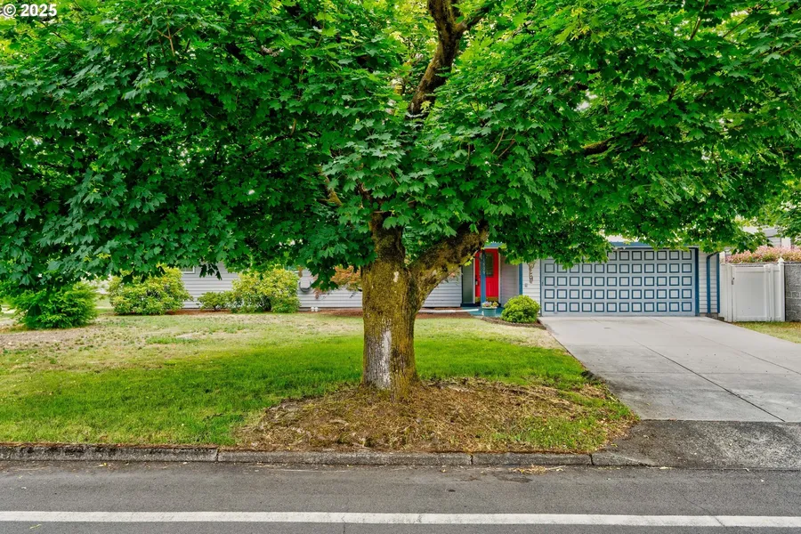 This beautifully updated 1,436 sq. ft. home offers three bedrooms, two bathrooms, and a spacious layout designed for comfort. The primary suite features a newly remodeled bathroom with a double vanity. A wood-burning fireplace adds warmth to the main living area, while a second living room provides extra flexibility. Recent upgrades include a remodeled kitchen, fresh interior paint, a new driveway, and updated subflooring with laminate in the main living spaces and wall-to-wall carpet in the bedrooms. A covered patio overlooks a large yard with an underground irrigation system. An attached two-car garage adds convenience to this well-appointed home.