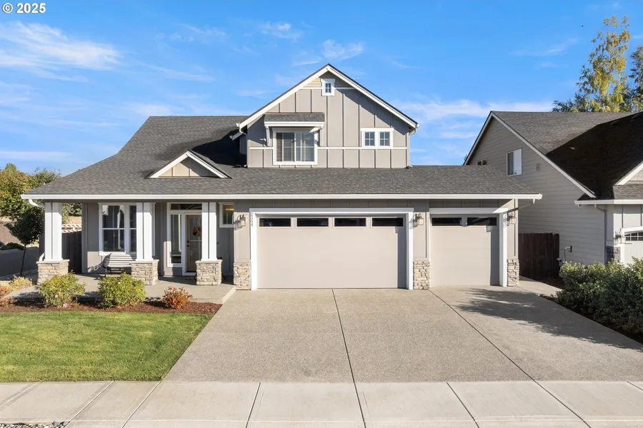 Stunning Craftsman Home with Owner's Suite on Main! Meticulously cared for and move-in ready, this 2021 Pacific Lifestyle-built home blends modern style and everyday comfort on an oversized corner lot in Battle Ground's desirable Cedars Landing community. Thoughtful design offers effortless main-level living enhanced by an open, vaulted, light-filled floor plan, chic contemporary fixtures, smart home technology for added convenience, timeless craftsmanship, dual zone heating and gorgeous, easy-care luxury hardwood flooring. The inviting living room centers around a gas fireplace with a striking shiplap surround - an elegant focal point for cozy gatherings. The open kitchen features slab granite counters, a large island, stainless steel appliances (refrigerator included!), and a spacious pantry. Enjoy flexible dining options with casual seating at the island, a light-filled nook overlooki...