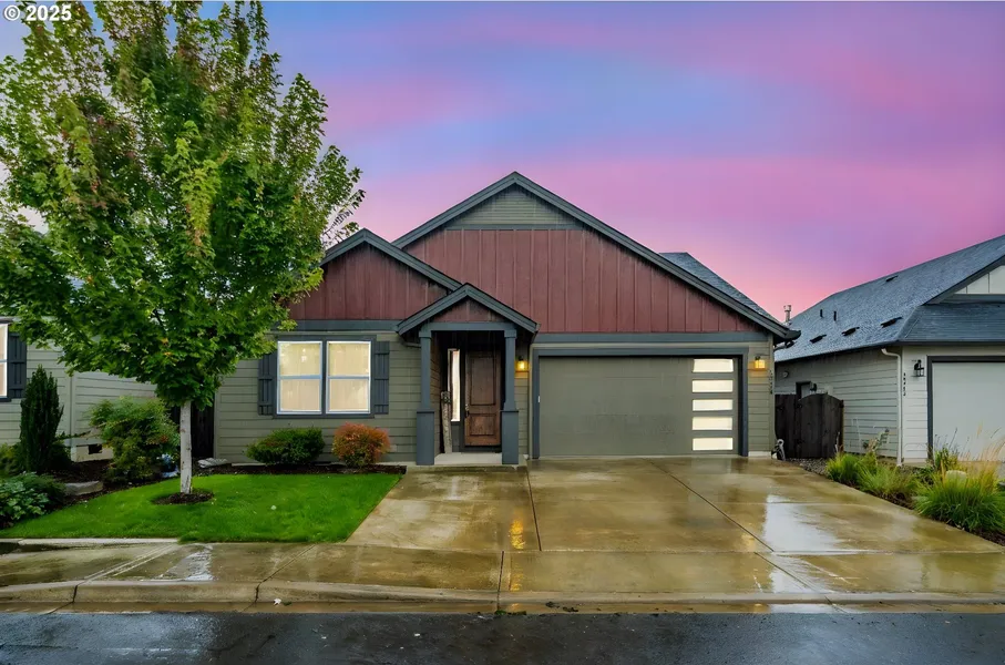 This stylish one-level has it all! Fantastic great room floor plan and fenced backyard with covered patio, set up perfectly for entertaining and indoor/outdoor enjoyment!The kitchen has a custom tile backsplash, an island with seating, a large pantry, and opens into the eating nook and living area. The slider to the backyard is right off the great room. The living area has a cozy gas fireplace with a white wood mantel, light and bright with upgraded LED bulbs, and the flooring is stylish wood-look laminate and new carpet. Close to everything, and an assumable FHA loan to help keep that rate low, too!
