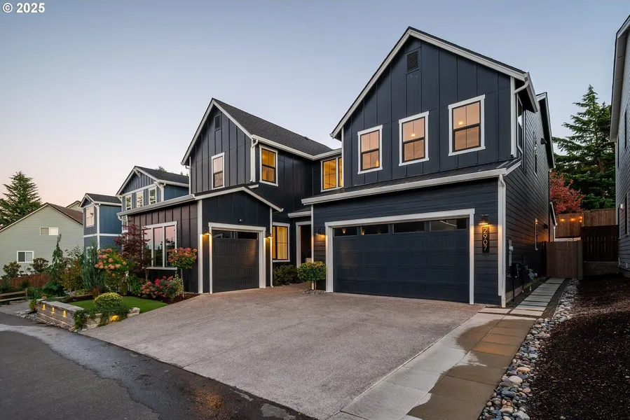 Come tour this magnificent, 2-Story, Modern Luxury Farmhouse. Located in the private, secluded Grand Vue neighborhood in Felida. Enter into a grand 2-story foyer, with high ceilings & engineered hardwood floors throughout the main floor. Open concept living. Living room features a cozy upgraded black tiled gas fireplace & upgraded wainscoting. Gourmet kitchen boasts a large island with quartz countertops, stainless steel appliances, built-in gas range, built-in microwave, & built-in oven. Modern white & black accents with upgraded lighting & gold fixtures. Main level bedroom suite offers a separate living with a full bath & walk-in closet. Main level also includes an office/den. 2nd floor loft/family room/bonus area. Primary suite features dual sinks/separate vanities, soaking tub, walk-in shower, & walk-in closet. 3 additional bedrooms on 2nd floor with full bathrooms. 2nd floor laundry...