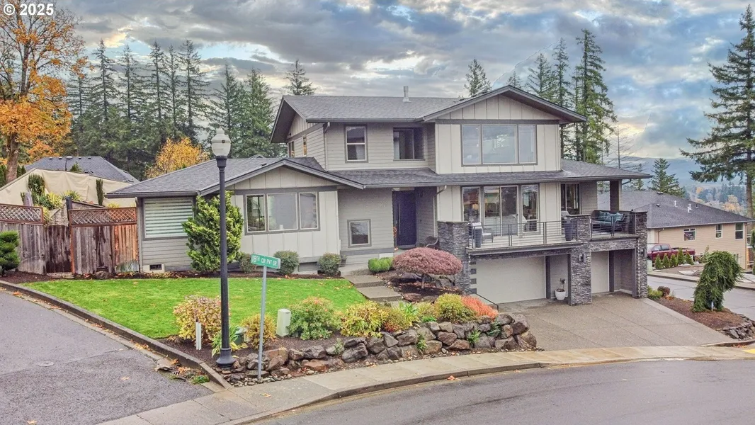 Welcome to this stunning 4-bedroom, 2.5-bath home featuring breathtaking views of the Columbia River. Designed with both comfort and sophistication in mind, this home offers an open layout, laminate flooring throughout, and tall 8-foot doors that add a touch of elegance. The high-end kitchen is a chef's dream with a commercial-grade refrigerator, gas cooktop and stove, waterfall quartz countertops, and abundant cabinetry for storage. The spacious living area includes a gas fireplace and large windows that frame the incredible river views. Step outside to your private backyard oasis with an inground heated pool and built-in hot tub, perfect for relaxing or entertaining year-round. The easy-maintenance yard and corner lot location make outdoor living both beautiful and convenient. Additional features include a high-efficiency dual-zone HVAC system, hybrid hot water heater, instant hot water recirculating system, whole-house natural gas generator, security system, and quality window coverings including blackout and solar shades. The lower level offers a 10x24' heated storage room providing extra space and versatility. Ample storage and thoughtful details complete this exceptional home.