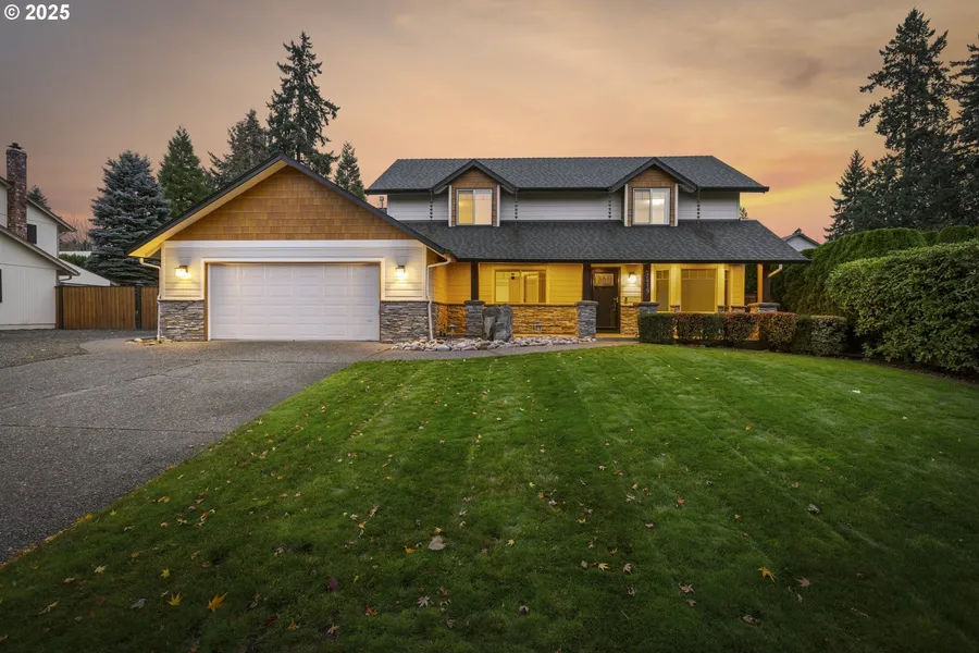 Discover this well maintained home on a fully fenced, landscaped half-acre lot located at the end of a private, dead-end street in the Salmon Creek area of Vancouver, Washington. A covered front porch welcomes you into a comfortable and very well maintained home. The kitchen offers granite counters and stainless steel appliances. The family room features vaulted ceilings, a brick fireplace with a gas insert, and direct access to an expansive back patio. The main-floor primary suite includes a walk-in closet, sliding doors to the backyard, and a continental bath with framing in place behind the drywall for optional en suite access. An additional main-level room functions perfectly as an office or second bedroom. Upstairs features four bedrooms and a full bath, providing plenty of flexibility for guests, work, or hobbies. A spacious 11X10 laundry/mudroom is located just off the front entry...