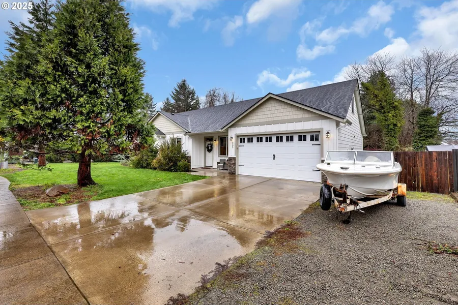 This inviting home features a nearly all one level living with upstairs bonus room/second family room. 3 spacious bedrooms on the main with tall ceilings, Luxury vinyl flooring, pantry, slab granite counters thru out. Primary suite features walk in closet, walk in shower, double sinks. Large fully fenced backyard with tool shed, raised garden beds, concrete patio. Room for boat/RV parking in front or on the side of the home.