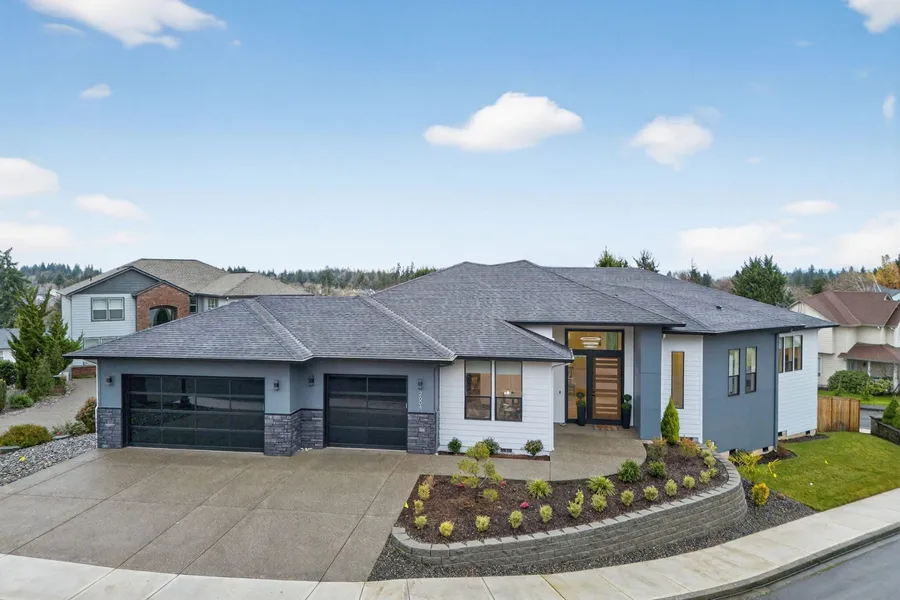 Completed in 2025 by SVN Construction, this custom Ridgefield residence presents a polished expression of modern luxury that is easy on the eyes and a comfortable environment to call home. Designed to maximize light and scale, the home features 11-foot ceilings and expansive floor-to-ceiling windows that frame the landscape while filling the interior with natural light. Wide-plank European oak flooring runs throughout the main living and bedrooms, complemented by stylish tile floors for the bathrooms and laundry. The professional-grade kitchen anchors the home with premium appliances and clean, contemporary finishes suited for both daily living and entertaining. The primary suite offers a true retreat, highlighted by heated tile flooring in the spa-inspired bathroom, smart mirrors, free standing tub and dual shower head super shower. A HRV system supports year-round comfort and air quali...