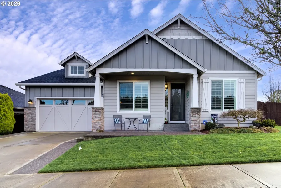 BETTER THAN NEW ONE LEVEL HOME. 3 bedrooms, 2 bathrooms, 1923 sqft, built in 2017 on a 7,745 sqft lot. Certified energy efficient home built by New Tradition Homes that has lots of light and includes engineered hardwood floors in the living areas & plantation shutters throughout. Office w/ closet at the entry. Upgraded kitchen w/ huge quartz island, corner pantry & 5 burner gas range w/ stainless steel hood that opens to dining area & the great room w/ gas fireplace. Primary bedroom has walk-in closet and bathroom w/ shower & lots of storage. 3rd bedroom is large and next to the hall bathroom. Utility room off the garage w/ sink & matching cabintry. Hi-efficiency forced air heat system w/ AC. Tankless gas water heater. Covered back patio w/ extended area receives daytime sun/evening shade and overlooks the private fenced yard (no neighbors backing directly to the home). Superb neighborhood near both freeways & the conveniences of Salmon Creek.