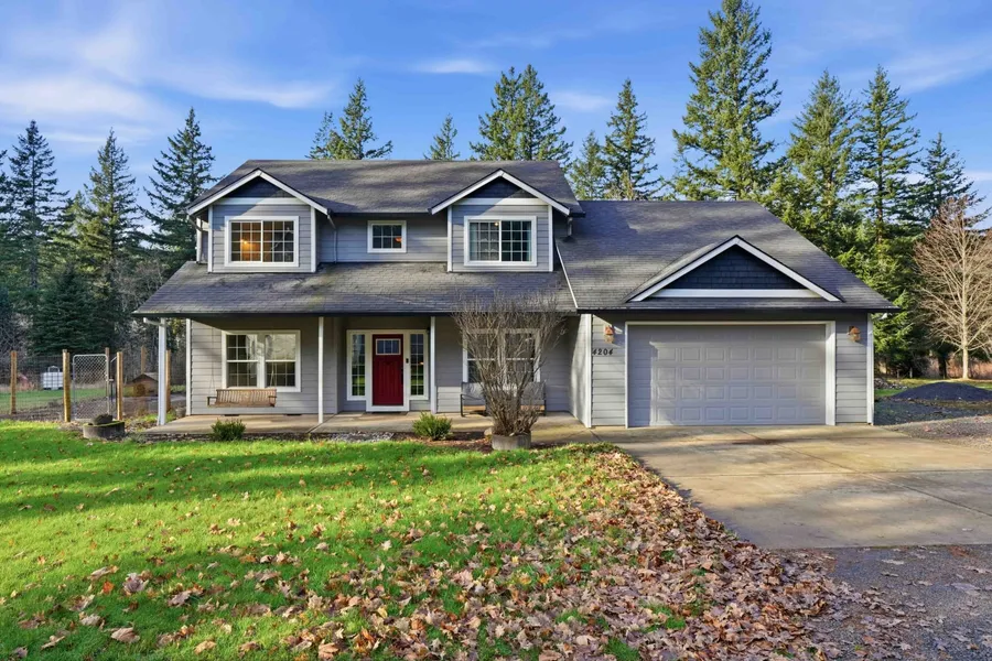 Escape the city and embrace privacy, nature, and versatility on this serene 5-acre Washougal retreat. Year-round Cougar Creek meanders through the property, feeding a seasonal pond in the fall and attracting abundant wildlife including deer and birds. Mature evergreens border open grassy meadows, while fruit trees, blueberry bushes and a fenced garden create the perfect setting for farm-to-table living. The 3,054-square-foot home offers 4 bedrooms, including a main-level bedroom, plus a spacious upstairs bonus room. Warmth and elegance shine through cherry wood floors, slab granite countertops, and custom cabinetry. The chef's kitchen features double ovens, a walk-in pantry, and a charming dining nook with peaceful views of the landscape. Gather in the inviting family room with a cozy woodstove, host guests in the formal living and dining rooms, or relax in the expansive bonus room. The primary suite is a true retreat with a jetted tub, double shower, and walk-in closet. An impressive 2,000-square-foot shop with soaring 16-foot ceilings is ideal for hobbies, business, or recreation. Equipped with two 14-foot doors, multiple 220-volt outlets, and woodstove heat, it easily accommodates RVs, boats, and serious projects. Additional features include a large patio for entertaining, generator hookup, circular driveway, and private road access. Whether you're seeking a peaceful homestead, a work-from-home solution, or simply room to breathe, this exceptional property delivers space, comfort, and tranquility.
