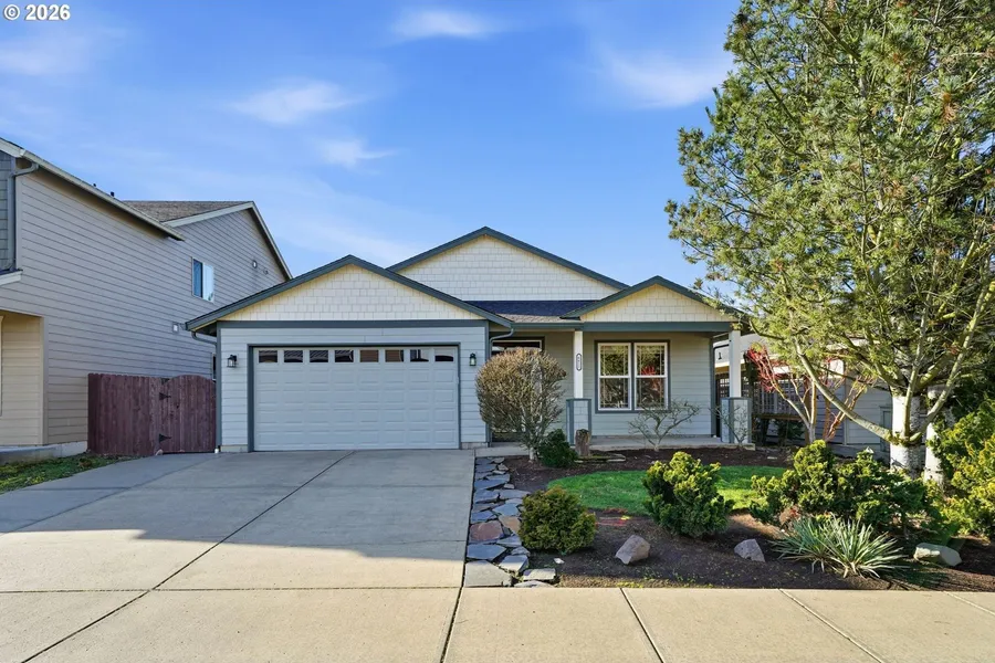 Incredibly well-maintained one-level home loaded with upgrades. Freshly painted exterior and brand-new windows enhance both curb appeal and efficiency. The welcoming living room features a cozy fireplace, complemented by hardwood floors that flow throughout the main living areas and new carpet in bedrooms. The kitchen offers warm cabinetry, slab granite countertops and backsplash, and stainless steel appliances. The spacious primary suite includes a walk-in closet and a luxurious bath with heated tile floors, slab granite countertops, and a shower with slab granite walls. Two additional bedrooms share a beautifully updated bathroom with heated tile floors, a jetted tub, and slab granite surround. Enjoy low-maintenance landscaping, a fully fenced yard, and a private, expansive covered patio with additional storage shed, perfect for relaxing or entertaining.