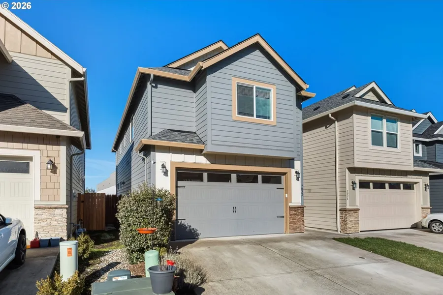 Move in ready and lightly lived in, this modern 3 bedroom, 2.5 bath home offers 1,693 square feet of thoughtfully designed living space. Built in 2020, the open concept main level features quartz countertops, stainless steel appliances, and thoughtfully added dimmer switches throughout the lighting, ideal for everyday living and entertaining. Upstairs, the spacious primary suite includes a walk in closet and dual vanities, while the second full bathroom also offers dual sinks for added convenience. A generous loft provides flexible space for work, media, or relaxation. Comfort is enhanced with gas forced air heating, central A/C, and a tankless gas water heater. Enjoy outdoor living year round with a covered back patio and a fully fenced, low maintenance turf backyard complete with a retaining wall and storage unit that can stay. Easy access from the backyard to the street adds everyday functionality. Located in one of Ridgefield's most desirable neighborhoods, residents enjoy access to walking trails, a basketball court, and nearby parks. Conveniently close to shopping, dining, and entertainment including Ilani, this home offers a blend of modern comfort, easy living, and an ideal location. Schedule a tour and see how effortlessly this home fits today's lifestyle.