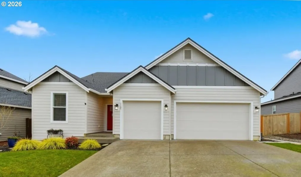 Beautiful 4-bedroom, 3-bathroom home built in 2022, meticulously maintained and truly move-in ready. This thoughtfully designed floor plan features a spacious great room filled with natural light, high ceilings, and quality finishes throughout. The kitchen is designed to impress, showcasing 3 cm slab quartz countertops, subway tile backsplash, stainless steel appliances, gas cooktop, a large island with eating bar, and spacious pantry. Just off the entry, two bedrooms share an adjoining full bath, ideal for guests or a home office set up. The primary suite is complete with double sinks, a soaking tub, walk-in shower, stylish tile accents, and a generous walk-in closet. The fourth bedroom is privately situated down its own hallway. Additional features include a cozy fireplace, laminate plank flooring, an oversized laundry room, motorized retractable awning, energy-efficient heat pump with A/C, a 3-car garage with ample storage, and fully landscaped grounds with fencing and a sprinkler system for easy maintenance. Located in the desirable Creekside Heights community, just under a mile from downtown Battle Ground, this home reflects true pride of ownership and is ready for its next chapter.