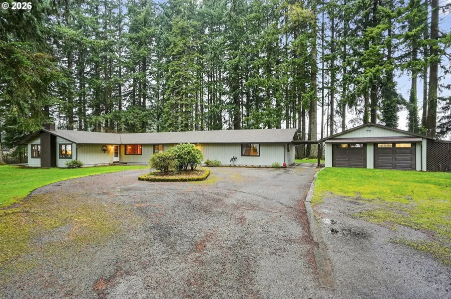 Discover your equestrian oasis on this move-in ready 9-acre property tucked into the trees in Woodland, in the coveted La Center School District. Convenient to La Center, Ridgefield and Battle Ground, and roughly 40 minutes to PDX, this property blends serene country living with practical access. The lovingly maintained ~3,000sqft home offers flexible, multi-generational living with two living rooms and two potential primary suites on separate wings-ideal for work-from-home or multi-use living. Large windows and expansive decks fill the home with natural light and provide sweeping views of pastures where horses and livestock graze. The kitchen anchors the floorplan and flows to comfortable gathering spaces, while covered carport plus an oversized garage offer abundant workspace and storage. Equine facilities are outstanding: a charming four-stall barn with bedding/tool storage, open tack...
