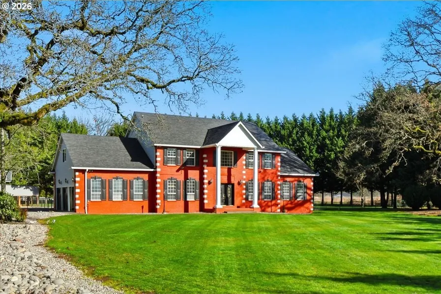 Amazing colonial home with a beautiful setting on 2.5 acres with electronic gate. Freshly refinished hardwood floors, fresh paint, new garage doors and openers. New roof, gutters, and hvac for both the home and outbuilding. New covered patio w/stone accents. New pool with pool changing area and shower. New trex decking. Outbuilding with 3 guest rooms up w/shared bathroom and kitchenette. 1 down with separate bath and kitchenette.