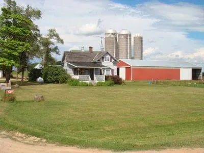 Very neat and clean operating DAIRY FARM on 4.8 acres located in Clark County. 51 tie stalls w/mats. Barn: 38'x70' 2-story and 36'x50' 1.5 story with wood & tin exterior and asphalt roof. 14'x16' Milkhouse, new elec. water heater. 9-yr old earthen pit & pump. Heifer Shed with concrete floor. 3 silos w/unloaders. Metal Machine Shed. 20'x76' Garage & shop with 220 amp service, 1/2 cement slab & wood stove. Well-kept 2-story home has 3 bedrooms and 1 bath, new electric water heater, and full basement.