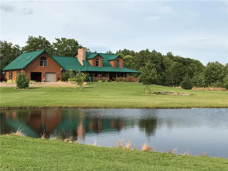 Private Retreat at the end of the road w/ 120 acres, woods & tillable & private pond. This log home offers 3200+ sq.ft. of living space plus a full basement. 3 bedrooms, 2.5 bathrooms, attached 2+ car garage, 2 stone fireplaces, wood & tile flooring, vaulted ceilings ,cherry caninets, plenty of character with an open concept. Decking and covered porch overlooking the pond. Large family room on 2nd level. 48'x60 heated shop/shed with office. Must see to Appreciate. In-floor heat in base. Newer steel roof.