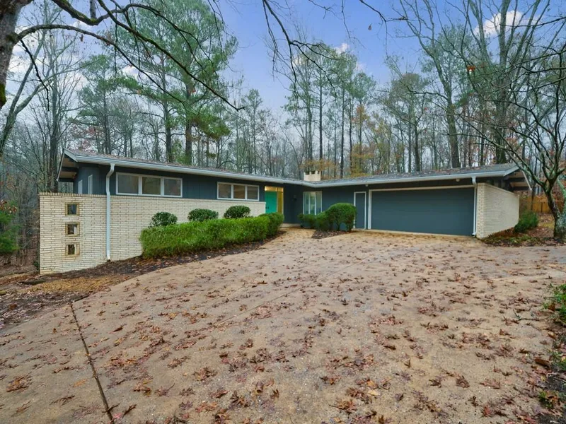 Constructed in 1977, this Mid-Century Modern Ranch has a completely renovated contemporary interior. Located only 10 minutes from UGA's East Campus, the circle drive in front of 270 Idylwood Drive makes for a welcoming entrance. Just inside in the foyer is the original slate tile floor and the original mid-century chandelier. A sunken formal living room is open to the foyer with vaulted beamed ceilings and wall to wall windows that frame the gorgeous forested back yard. A second living space is immediately adjacent to the formal living room. The gorgeous floor to ceiling stacked stone fireplace, built in shelves and sliding glass doors that open to the back deck. The sleek contemporary kitchen is anchored by the central island with double waterfall edge quartz countertops, stainless steel oven and microwave drawer. The cabinets feature LED under-mounted lighting and glass backsplash tile...