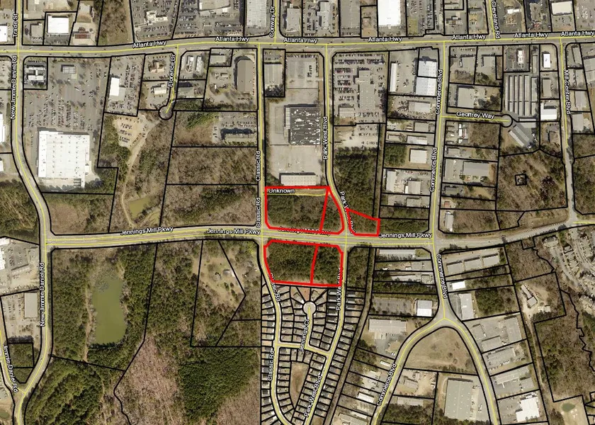 Research Parcel InformationThe property is located on the North and South side of Jennings Mill Pkwy at the intersection of Park West Blvd and Classic Road.
