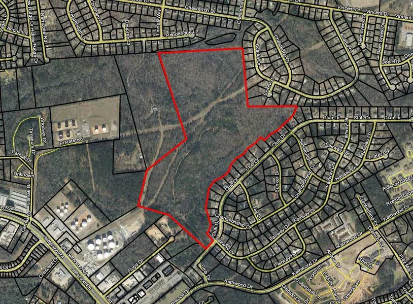 884 acres of gently rolling land suitable for a residential development with an excellent in-town location. The property is serviced by all utilities, It's mostly wooded with a mix of hardwoods and pines. There is a small pond and a creek running along the eastern property line. The property is zoned RS-15 which allows 15,000 square foot lots.