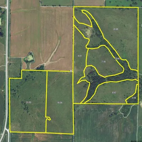 Combination of tillable and pasture acres. Located on a hard surface road with good fences.
