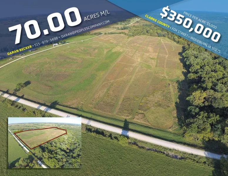 Offering an outstanding 70 acre investment property with top notch hunting located in Section 5 of Franklin Township in Clarke County Iowa. This farm has 58.73 tillable acres carrying a CSR2 of 67.1. These acres are currently enrolled in CRP at $221.42 per acre for an annual payment of $12,997 until 09/30/2023. The CRP has been well maintained and is in excellent condition.