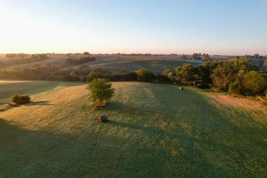 The site is turn-key and includes access to essential utilities such as rural water, electric, multiple high-speed internet options, and also features an established entrance off pavement. The gently rolling topography accommodates a variety of building site options, including walkout, daylight, and flat layouts. Timbered borders, a pond, and existing tillable acres that are currently in hay production create a diverse and attractive landscape while offering privacy and a natural buffer from neighboring properties.