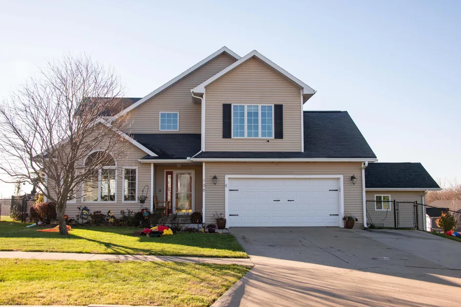 Looking for a beautiful home with municipal amenities and a country feel? This propertylocated 30-minutes south of Jordan Creek off I-35 in Country Club Estates, a modern,serene neighborhood on the golf course with fantastic scenery and friendly neighbors and $15 golf fees is waiting to greet you. Live the good life in this modern open concept home with vaulted ceilings, solid wood floors, huge Heat & Glo gas log fireplace, 1/2 bath, laundry room, and 2 pantries all on the main level. Custom cherry wood butcher block top on island and beautiful quartz countertops in kitchen., as well as a sliding glass door to an incredible deck. Large newly rebuilt deck with new 10' x 16' gazebo, beautiful landscaping and fenced backyard are perfect for enjoying the scenic sunrises & sunsets. Huge master bedroom with vaulted ceiling, private full bath with jetted tub, andwalk-in closet on the upper leve...