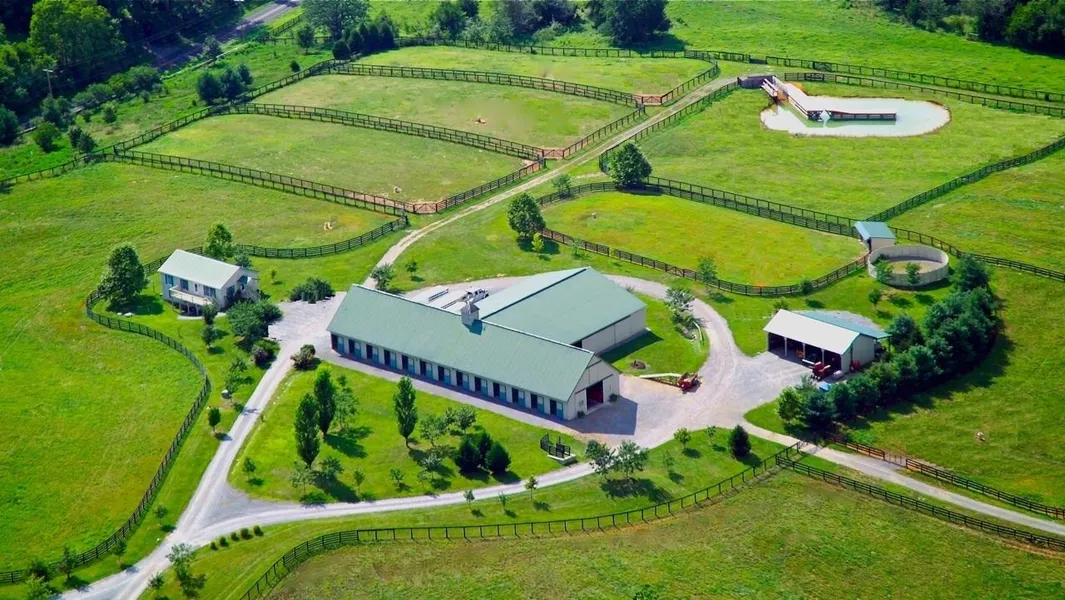 The state-of-the-art equestrian infrastructure on this farm includes a 21 stall barn with automatic waterers in each stall, rubber pavers in aisle, large pine tackroom, meds room with washer and dryer, heated wash stall, 6-horse indoor exerciser, and much more. Additional 2 stall barn and 4 stall barn, 18 paddocks, 8 run-in sheds, and 4 wells. 150 x 250 bluestone and rubber riding school and equine swimming facility. The staff housing with three separate living quarters in one house is convenient to the stable.