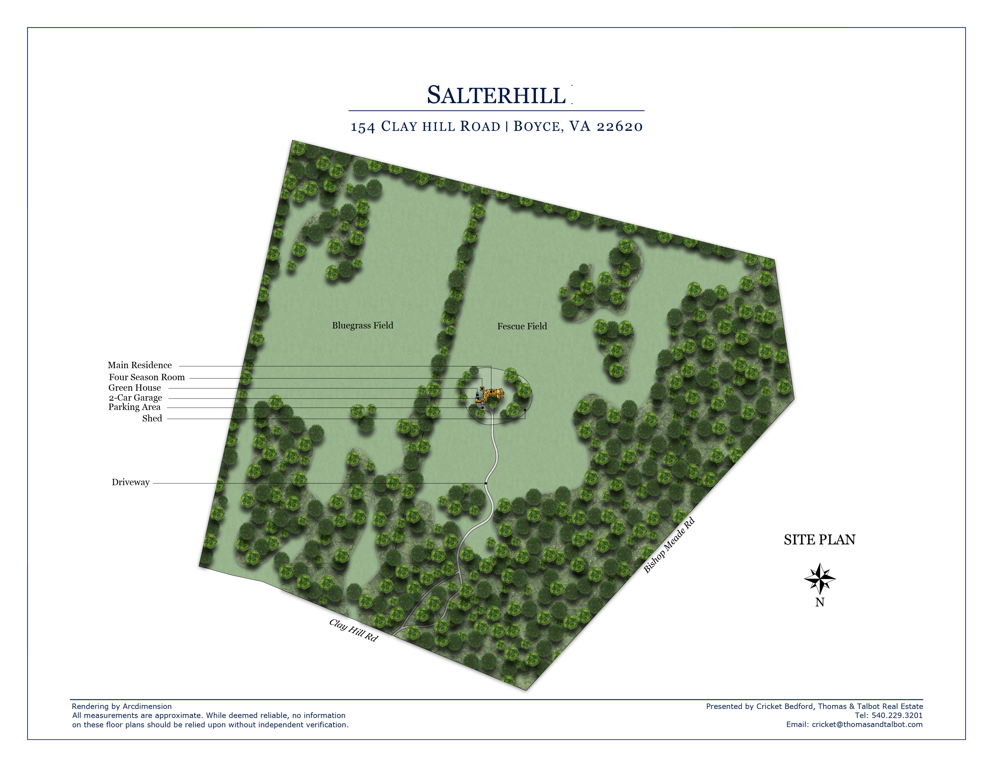 Research Parcel InformationFrom Rte 50 West: Cross the Shenandoah River and take RIGHT onto Millwood Road. Follow 2.4 miles to Millwood. Take RIGHT onto Bishop Meade (Rt 255) after Locke Store. Go 1.4 miles until RIGHT onto Clay Hill Road. Go .03 miles and see Salterhill sign on right. From Rte 7 West: Take LEFT onto E Main St in Berryville and go 1.4 miles. Turn LEFT onto Buckmarsh St (Rt 340). Go 3.5 miles until LEFT onto Bishop Meade. Follow 1.6 miles until LEFT onto Clay Hill Road. See above.