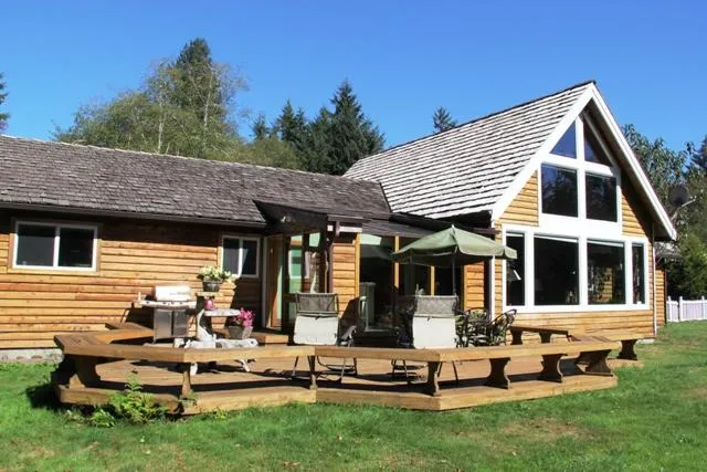Private and set back off the road, this beautiful Cedar Chalet home is amazing with tons of windows and a vaulted clear wood beam ceilin...