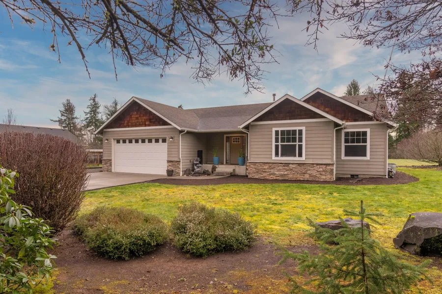 Your Knappa dream home is on the market! Located on a quiet street without through-traffic, this property features 2.8 acres of land surrounding this immaculate ranch home. The open-plan kitchen/dining/living room has soaring vaulted ceilings, new luxury vinyl plank flooring, and a cozy wood-burning stove for those chilly nights. The primary bedroom features an attached bath with double sinks, a walk-in closet, a sliding door to the backyard, and matching luxury vinyl plank flooring.There is an attached 2 car garage as well as RV parking, raised planting beds for gardening, and a covered patio for year-round entertaining.