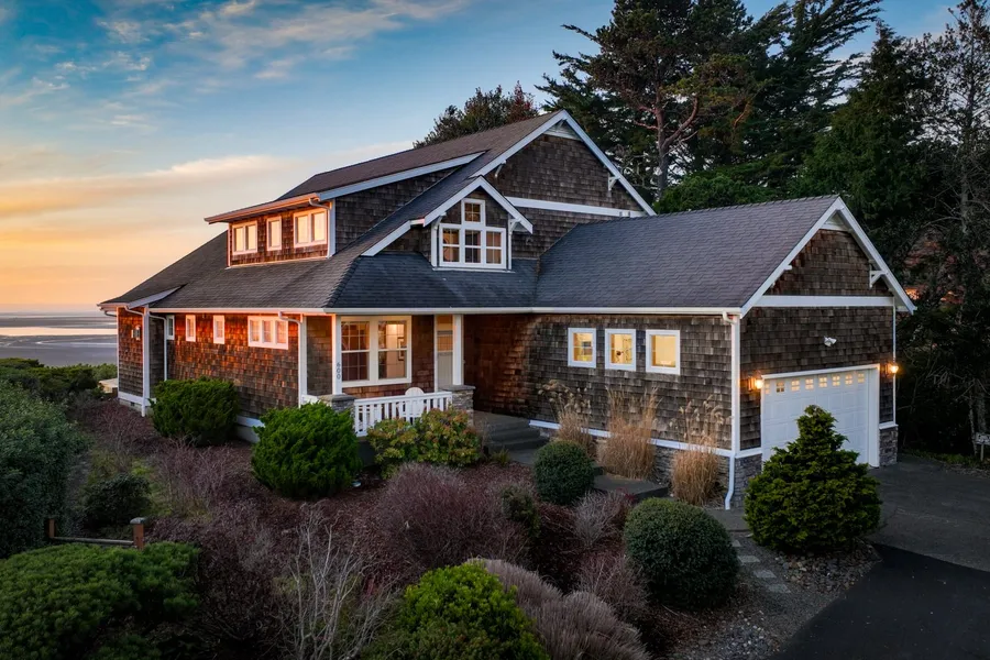 The everchanging water and wildlife views will enthrall you at this very special, private north Seaside waterfront location. Lose yourself in the calm of this 5 bedroom, 3.5 bath custom home with 2 ocean view primary suites. With gathering space on both levels, including a welcoming large kitchen, your friends and family will love their time at the beach. Enjoy the sunsets and views of Tillamook Head from your back deck. Your covered front porch is the perfect place for a morning coffee as the sun comes over the mountains. This home is uniquely designed with the space and storage needs of full-time residents, as well as the easy care and security features desired by second homeowners. A large laundry room with storage and countertop is connected to the 2-car garage. A lawn and storage shed occupies the area to the east of the home on this .46 acre lot. While all the activity & fun of Sea...