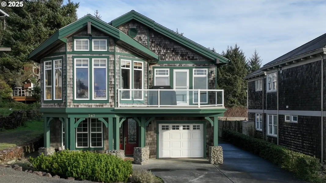 Nestled on the north end of Cannon Beach, this beautifully built 4 BR/3.5 BA home offers sweeping ocean views from Chapman Point to iconic Haystack Rock. A reverse floor plan and open-concept living space feature vaulted ceilings, large windows, gas fireplace, and home theater, ideal for gathering or storm watching. The well-appointed kitchen includes a cook island, walk-in pantry, and deck for seamless indoor-outdoor living. The primary suite offers a private deck, walk-in closet, and serene mountain views. Additional bedrooms are thoughtfully positioned on the lower level. Other features include a den, laundry room, central vac system, and single-car garage. Offered fully furnished and turn-key, just steps from the beach and minutes to Ecola State Park and downtown Cannon Beach.