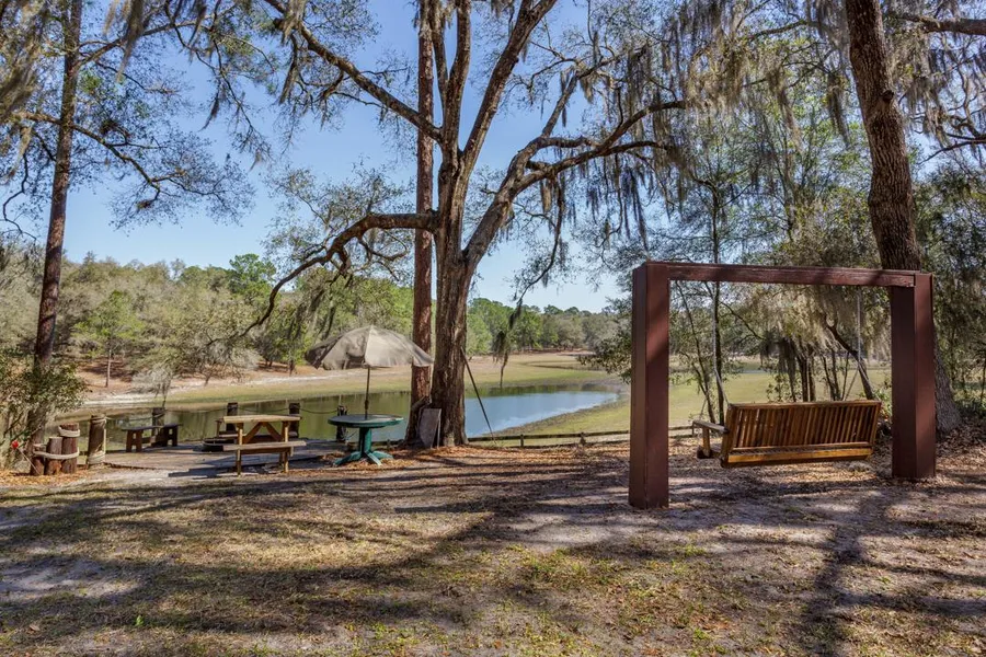 Private sanctuary of 51+ acres nestled near McRae and adjoining the most secluded portion of Gold Head State Park. This property has been in the same family for over 100 years. Everything about the home is large with plenty of storage! Huge Master suite with walk in closets and extra rooms that could be used as an office, nursery or craft room. Open kitchen, dining and living rooms. Brick wall fireplace in the grand living room. Large laundry room with shelving and there is a full bath off the kitchen. Well replaced 2020, two drain fields, two barns and two sheds. Pastures for animals as well as a pond and the property is almost completely fenced. Bring your animals and enjoy this comfortable home and wildlife for many decades!