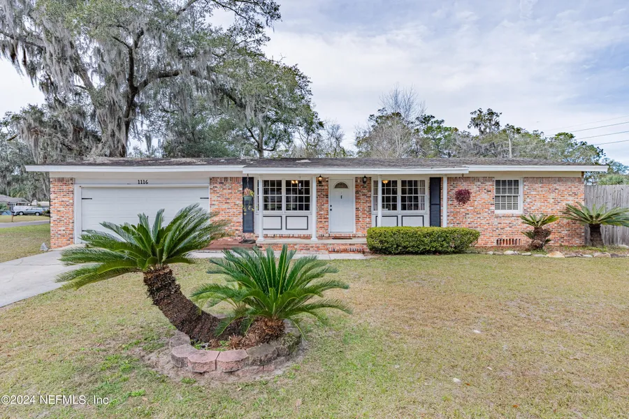 Well maintained home in the heart of Orange Park situated in the sought-after San Robar neighborhood on a corner lot. This home boasts 3 bedrooms and 2 bathrooms, and 1236 sq. ft. per appraisal. The eat in kitchen showcases impressive upgrades, including updated cabinetry, granite countertops, well-maintained black profile appliances, a beautifully crafted backsplash, recessed lighting, stainless steel range, and farm sink. Interior enhancements feature carpet throughout living areas and bedrooms, along with updated bathrooms. Step outside onto the covered patio and enjoy the expansive fully fenced back yard. Conveniently located close to schools, shopping, restaurants and I295 and NAS JAX.