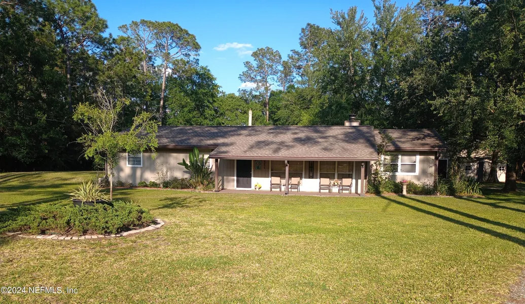 Tranquil home nestled on over an acre of land is country life at its best. Charming 3 bed 2 bath home has an open floor plan with a cozy wood burning fireplace as the focal point. This home also boasts a spacious flex space that can be used for an office or play room, a huge laundry room with lots of storage, updated bathrooms. and a chef's kitchen complete with black appliances. Relax or entertain friends under the screened patio/covered deck area and enjoy the lush landscape of this back yard oasis. Detached two car garage/workshop and 2-car carport is offered as well as a covered RV parking. Two storage buildings are included; they are 12' x 30' and 8' x 14'. New septic system in 2022, new roof in 2020, new well pump and tank in 2020, home was re-plumbed in 2019. Dedicated fenced garden area, property is fully gated,